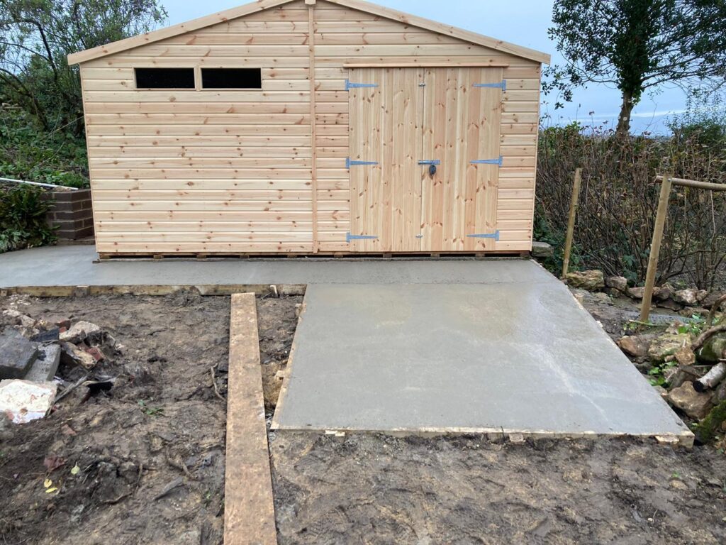 Poured Concrete Bases: Steel-reinforced foundations perfect for heavy garden offices, garages, and swim spas.